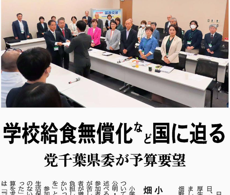 日本共産党千葉県委員会と県内地方議員らは17日、衆議院第1議員会館で文部科学省、国土交通省、厚生労働省などに対し来年度の予算について要望しました。小池晃党書記局長・参院議員、斉藤和子、畑野君枝の両元衆院議員らが同席しました。