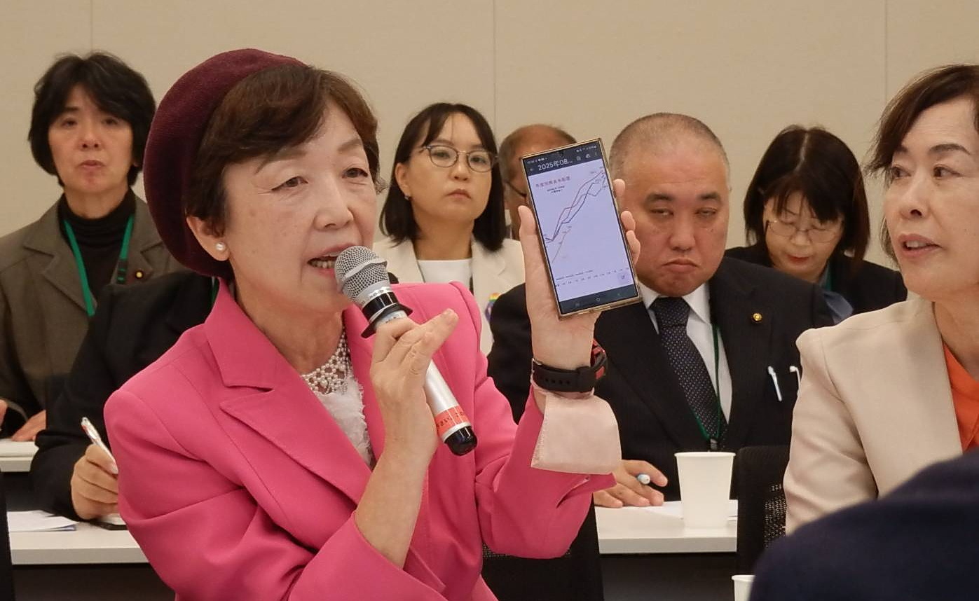 小学校の給食費無償化について、文科省は「自民・公明・維新が議論中だ」と述べるにとどまりました。参加者は「物価高騰で家計が苦しい中、明らかに滞納者が増えている。全額国が負担し、子どもたちがおなかいっぱい食べられる給食を」と強く求めました。